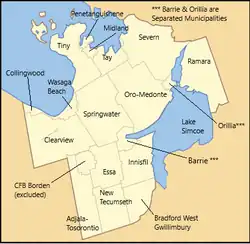 - ^ County of Simcoe Act, 1993, S.O. 1993, c. 33, s. 2