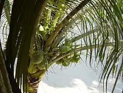 Different versions of the legend are told in different countries in Oceania.[4] The coconut tree (Cocos nucifera) has many uses and is an important source of food. It is also used for making coconut oil, baskets, sennit rope used in traditional Samoan house building, weaving and for the building of small traditional houses or fale. The dried meat of the coconut or copra has been an important export product and a source of income throughout the Pacific.