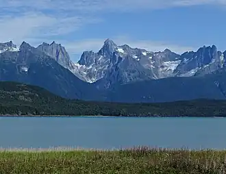 Sinclair Mountain is a prominent 6,800+ ft (2,070+ m) mountain summit located in the Boundary Ranges of the Coast Mountains, in the U.S. state of Alaska. The peak is situated 26 mi (42 km) south of Skagway, and 15 mi (24 km) north of Lions Head Mountain, on land managed by Tongass National Forest. Although modest in elevation, relief is significant since Sinclair Mountain rises 6,800 feet above the entrance to Chilkoot Inlet in 3.5 mi (6 km). The peak's name was established in 1920 by the United States Coast and Geodetic Survey to remember Cephas Hempstone Sinclair (1847–1920), hydrographic and geodetic engineer who had 47 years of field service with that agency.[3] The mountain's toponym was officially adopted in 1920 by the U.S. Board on Geographic Names.[4] The first ascent of this seldom climbed peak was made in mid-June 1973 by Jerry Buckley, Joe Greenough, and Craig Lingle.[5][6]