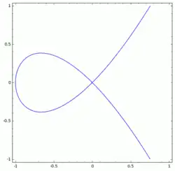 The plane algebraic curve (a cubic curve) of equation y2x2(x + 1) = 0 crosses itself at the origin (0, 0). The origin is a double point of this curve. It is singular because a single tangent may not be correctly defined there.