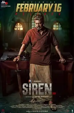 Siren (also marketed as Siren 108) is a 2024 Tamil-language action thriller film directed by Antony Bhagyaraj, in his directorial debut, and produced by Sujatha Vijayakumar under Home Movie Makers. The film stars Ravi Mohan, Anupama Parameswaran and Keerthy Suresh, Yogi Babu, Azhagam Perumal, Samuthirakani and Ajay.