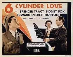 Six Cylinder Love is a 1931 American pre-Code comedy film directed by Thornton Freeland and starring Spencer Tracy, Sidney Fox and Edward Everett Horton. It was produced and distributed by Fox Film Corporation and is a remake of their 1923 silent original. Both films are based on the 1921 Broadway play.[2][3] It recorded a loss of $25,000.[1] A further remake The Honeymoon's Over was released in 1939.