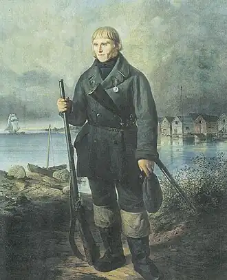 ![]() Matts Kankkonen, a local volunteer, depicted by Wladimir Swertschkoff in 1856. | |||||||