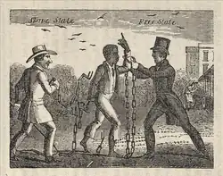 The delegates approved the Fugitive Slave Clause of the Constitution (Article IV, section 2, clause 3), which prohibited states from freeing those "held to Service or Labour" (meaning slaves, indentures, and apprentices) who fled to them from another state and required that they be returned to their owners.[57] The Fugitive Slave Act of 1793 and the Fugitive Slave Act of 1850 gave effect to the Fugitive Slave Clause.[58] Salmon P. Chase considered the Fugitive Slave Acts unconstitutional because "The Fugitive Slave Clause was a compact among the states, not a grant of power to the federal government".[59]