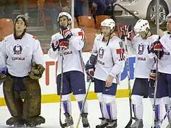 The Slovenia men's national ice hockey team is the ice hockey team representing Slovenia internationally. It is governed by the Ice Hockey Federation of Slovenia. As of May 2025, Slovenia is ranked 15th in the world by the IIHF World Ranking. The team's biggest success is reaching the quarter-finals at the 2014 Winter Olympics.[4] Their best record at the Ice Hockey World Championships is 13th place, achieved in 2002, 2005 and 2025.[5]