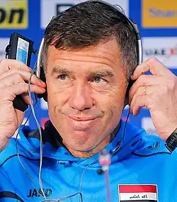 In October 2011, the Football Association of Slovenia appointed Slaviša Stojanović as the new manager.[52] He led the team in only nine matches, including the first four matches of the 2014 FIFA World Cup qualifiers, where Slovenia recorded one victory and three defeats.[53] He was sacked by the end of 2012 and was replaced by Katanec, who had previously led the team between 1998 and 2002.[54][55] Under his leadership, Slovenia lost at home to Iceland, before winning four consecutive games to finish third in the group, two points behind Iceland.[53]