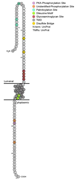 Within the N-terminus, SMIM14 is predicted to have three palmitoylation sites,[20] which facilitates the clustering of proteins, and one disulfide bridge, stabilizing the structure of the protein. There is also a predicted glycosaminoglycan site spanning residues 45–48, proximal to the transmembrane domain.[21] The C-terminus is predicted to have two unidentified phosphorylation sites and one PKA-phosphorylation site.[22]