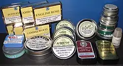 Snuff originated in the Americas and was commonly used in Europe by the 17th century. Traditional snuff production consists of a lengthy, multi-step process, in tobacco snuff mills.[1] The selected tobacco leaves are first subject to special tobacco curing or fermentation processes, where they will later provide the individual characteristics and flavor for each type of snuff blend.[1] Snuff is usually scented or flavored, with many blends of snuff requiring months to years of special storage to reach the required maturity.[1] Typical traditional flavors are varieties of blended tobacco leaves considered original "fine snuff" without any addition of scents or essences.[1] Varieties of spice, piquant, fruit, floral, and mentholated (also called "medicated") soon followed, either pure or in blends.[1] Each snuff manufacturer usually has a variety of unique recipes and blends, as well as special recipes for individual customers.[1] Common flavors also include coffee, chocolate, bordeaux, honey, vanilla, cherry, orange, apricot, plum, camphor, cinnamon, rose and spearmint. Modern flavors include bourbon, cola and whisky. Traditional classic German snuff blends are the pungent and sharp Schmalzler and Brasil blends.