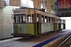 The Beaux-Arts metro station in downtown Charleroi exhibits an old green STIC tram.
