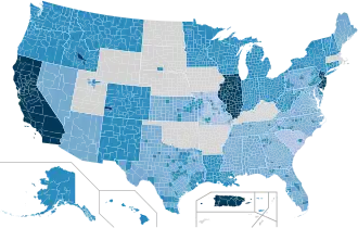 - Alabama (4 April), Alaska (28 March), Arizona (31 March), California (19 March), Colorado (26 March), Connecticut (23 March), District of Columbia (1 April), Florida (3 April), Georgia (3 April), Hawaii (25 March), Idaho (25 March), Illinois (21 March), Indiana (24 March), Kansas (30 March), Louisiana (23 March), Maine (2 April), Maryland (30 March), Michigan (24 March), Minnesota (27 March), Missouri (6 April), Montana (28 March), Nevada (1 April), New Hampshire (27 March), New Jersey (21 March), New Mexico (24 March), New York (22 March), North Carolina (30 March), Ohio (23 March), Oregon (23 March), Pennsylvania (1 April), Puerto Rico (15 March), Rhode Island (28 March), South Carolina (7 April), Tennessee (31 March), Texas (2 April), Vermont (25 March), Virginia (30 March), Washington (23 March), West Virginia (24 March), Wisconsin (25 March): Stay-at-home orders.[69]