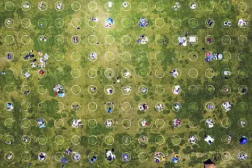 During the COVID-19 pandemic, social distancing measures were implemented nearly worldwide in order to slow the spread of the disease.[1] This article details the history of the social distancing measures, a list of countries implementing them, when they were implemented, and other details about the measures. Except where stated otherwise, dates in this article refer to the year 2020.