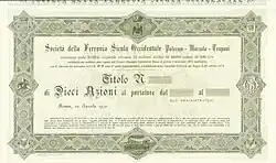 The Società della Ferrovia Sicula Occidentale (Railway Company of Western Sicily) was established in 1878 to construct a railway between Palermo, Marsala and Trapani.[1]