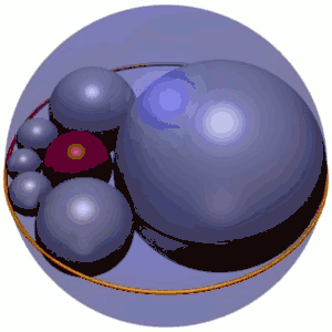 In geometry, Soddy's hexlet is a chain of six spheres (shown in grey in Figure 1), each of which is tangent to both of its neighbors and also to three mutually tangent given spheres. In Figure 1, the three spheres are the red inner sphere and two spheres (not shown) above and below the plane the centers of the hexlet spheres lie on. In addition, the hexlet spheres are tangent to a fourth sphere (the blue outer sphere in Figure 1), which is not tangent to the three others.