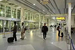 The Soekarno–Hatta Airport Skytrain (Indonesian: Kalayang Bandara Soekarno–Hatta) is a semi-driverless 3.05 kilometre Automated People Mover System (APMS) which connects Soekarno-Hatta Airport Terminals 1, 2, 3 and SHIA railway station, free of charge.[1] Trains are spaced 5 minutes apart, with 7 minutes needed to get from Terminal 1 to Terminal 3.[2][3] The trains are only available on the landside.