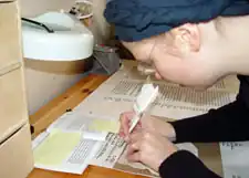 Aviel Barclay writing a Torah scroll