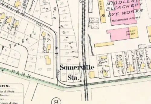 Somerville station on an 1884 map | ||||||||||||||||||||