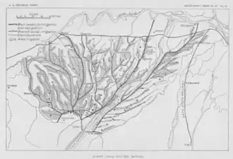 The Sone Canal System is a major 19th-century riverine irrigation network in the Indian state of Bihar. Originating from the Son River, it was a colonial-era engineering project designed to irrigate the plains of the historic Shahabad, Gaya, and Patna districts.[1] The system's original 1874 anicut at Dehri has since been replaced by the modern Indrapuri Barrage, located 10 km upstream.[2]
