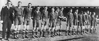 The first South African team to tour the British Isles and France occurred during 1906–07. The team played tests against all four Home Nations. England managed a draw, but Scotland was the only one of the Home unions to gain a victory.[12] The trip instilled a sense of national pride among South Africans.[11][13] The South Africans played an unofficial match against a 'France' team while the official French team were in England; the Springboks won 55–6.[14][15] It was during this tour that the nickname Springboks was first used.[16][17][18]