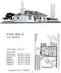 To these were added a set of "mirror image" plans, and further variety was achieved by specifying different roofing materials: tiles, of either cement or terracotta, or corrugated sheets, of either galvanized iron or asbestos cement. Most houses were built of brick, the outer walls being of cavity construction with the outer skin either brick or Mount Gambier stone.[5]