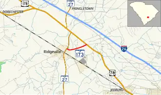 South Carolina Highway 173 (SC 173) is a 1.570-mile (2.527 km) primary state highway in the U.S. state of South Carolina. It serves to connect the town of Ridgeville with U.S. Route 78 (US 78). It is known as School Street for its entire length.