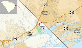 South Carolina Highway 179 (SC 179) is a 0.670-mile-long (1.078 km) primary state highway in the U.S. state of South Carolina. It travels from Little River to the North Carolina state line, near Calabash.