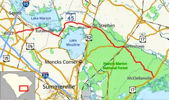 South Carolina Highway 45 (SC 45) is a 76.060-mile (122.407 km) primary state highway in the U.S. state of South Carolina. It serves as the main thoroughfare in northern Berkeley County.[4]