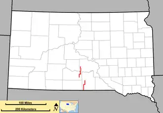 1. ^ a b "State Highway Log" (PDF). Pierre region: South Dakota Department of Transportation. January 2011. pp. 72–73. Retrieved December 22, 2011.
