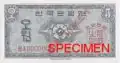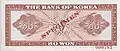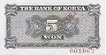 In 1946, the Bank of Joseon introduced 10 and 100 won notes. These were followed in 1949 by 5 and 1,000 won notes.