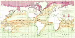 The South Pacific Gyre subseafloor community is also unusual because it contains oxygen throughout the entire sediment column. In other subseafloor biospheres, microbial respiration will break down organic material and consume all the oxygen near the seafloor leaving the deeper portions of the sediment column anoxic. However, in the South Pacific Gyre the low levels of organic material, the low rates of respiration, and the thin sediments allow the porewater to be oxygenated throughout the entire sediment column.[5] In July 2020, marine biologists reported that aerobic microorganisms (mainly), in "quasi-suspended animation", were found in organically poor sediments, up to 101.5 million years old, 250 feet below the seafloor of the region and could be the longest-living life forms ever found.[6][7]