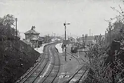 Captain Tyler of the Board of Trade carried out an inspection of the completed works on 22 February 1866; the line passed the inspection and it opened on 5 March 1866 without ceremony.[11][8] It was worked by train staff and ticket, with eight weekday trains daily each way, three on Sundays. The journey time from Southampton Docks station was 23 minutes; intermediate stops were Portswood (renamed St Denys from 1876) on the main line, then at Bitterne Road (renamed Bitterne in 1896), Woolston and Netley on the new line. It was not until 1883 that a direct siding connection was made from Netley station to the hospital; the War Office was charged interest on the capital outlay of the extension.[5]