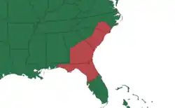 The southern hognose snake is found on the coastal plain of the southeastern United States from North Carolina, south to Lake Okeechobee in Florida, and west to Mississippi.[6]