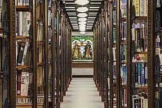 The library has a large collection of manuscripts, rare books, and archives.[7] Of the approximate 30,000 items in the Special Collections,1800 items are held on long-term loan at the Beinecke Rare Book and Manuscript Library at Yale University.