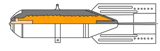 Sectional view of RBK with central ignition-explosive charge (RBK-250 ZAB2.5M)