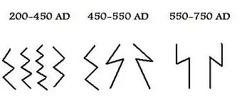 | Shape | Elder Futhark | Futhorc | Younger Futhark | |