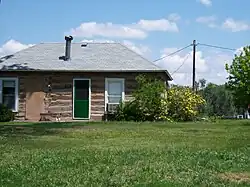 William Comstock stayed in the home valley of the Spade Ranch headquarters, which is approximately 25 miles (40 km) north of Ellsworth. Comstock had a sod house at the headquarters, another soddie as a ranch office, a good-sized bunkhouse, the log cookhouse (the log building moved from the Newman Ranch), a barn, feed yards, large corrals for working with cattle, breaking horses, branding, and dipping cattle, a blacksmith shop, a machine shop and the ranch store. The ranch store featured staple groceries, clothing, supplies, and a place to pick up mail carried from the Ellsworth post office.[10] Later Comstock built a large frame house in the center of Spade operations. One additional house was built as a home for Spade foreman, Mike Peterson. Peterson worked for the Spade for several years, but rather than work for a wage, he received both land and stock.