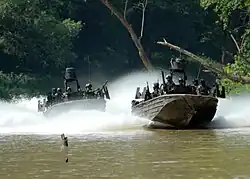 Special Operations Craft – Riverine is a boat used by the United States Navy to perform short-range insertion and extraction of special operations forces in river and near-shore environments. It replaced the Patrol Boat, River, and the mini armored troop carrier.[1][2]