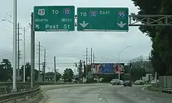 Roosevelt Expressway is the bypass built as a spur of I-10, which converted US 17 into a limited-access expressway north of Blanding Boulevard (SR 21), bypassing the Post Street/College Street route that Roosevelt Boulevard used to travel through the Riverside and Avondale historic district, passing by McDuff Avenue (SR 129) to I-10 eastbound. The expressway is accessible southbound via I-10 west as a left exit (exit 361).[3]
