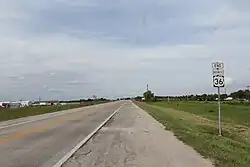 Business US 36 in Chillicothe begins at the south end of Chillicothe, starting at the diamond interchange between US 36 and US 65. The route travels about an eighth-mile north before turning east and traveling through the south of town parallel to US 36. The route continues three-fourths of a mile passing by various businesses, and turns south at South Mitchell Avenue before rejoining US 36 in the southeast of town.[5]