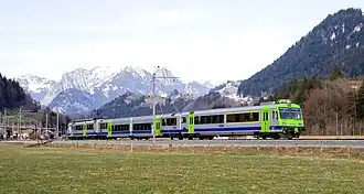 The Spiez–Zweisimmen railway is a single-track standard-gauge line in Switzerland that is currently operated by BLS AG. It was formerly owned by the Spiez-Erlenbach-Zweisimmen-Bahn (SEZ), also called the Simmentalbahn (Simme Valley Railway). The line runs from Spiez through the Simmental to Zweisimmen. It is marketed as part of the GoldenPass Line between Lucerne and Montreux, which also includes the metre-gauge Brünig Railway and Montreux–Lenk im Simmental line and part of the standard-gauge Lake Thun Railway.