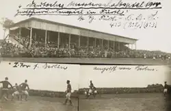 Just one year later, the grandstand was enlarged and provided with changing rooms and showers. This meant that 10,000 spectators could now watch the games. In 1919, the stadium was enlarged again - higher earthen walls and wider standing-room steps now provided space for 25,000 people.