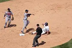 The Atlanta Braves are a Major League Baseball (MLB) team that moved to Atlanta in 1966 from Milwaukee where they were known as the Milwaukee Braves.[1] The Braves play their home games at Truist Park in suburban Cobb County, which opened in 2017 as the replacement for Turner Field, which had been the team's home since the 1997 season. Before then, they played at Atlanta–Fulton County Stadium from 1966 to 1996. They won the World Series in 1914 (as the Boston Braves), 1957 (as the Milwaukee Braves), and 1995, 2021 (as the Atlanta Braves). Braves players in the Baseball Hall of Fame include Hank Aaron, Orlando Cepeda, Tom Glavine, Chipper Jones, Greg Maddux, Eddie Mathews, Fred McGriff, Phil Niekro, Gaylord Perry, John Smoltz, Warren Spahn, Bruce Sutter, and Hoyt Wilhelm. Two former Braves managers have been inducted to the Hall in that role, Bobby Cox and Joe Torre, although Torre's induction was mainly for his accomplishments with the New York Yankees. Mathews also served as a Braves manager. Braves executive John Schuerholz entered the Hall in July 2017 for his accomplishments in that role.