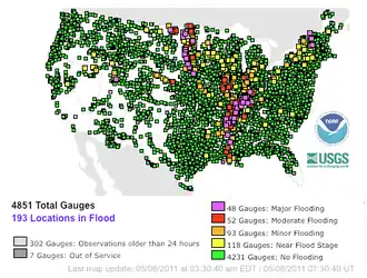 - ^ WaterWatch. "WaterWatch: Water Resources Conditions, Peak, Discharge". USGS. Retrieved June 1, 2011.