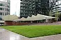 4. ^ a C-shaped building with a raised terrace occupying the void