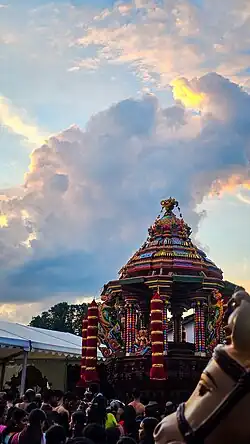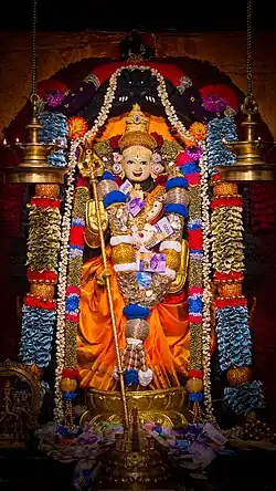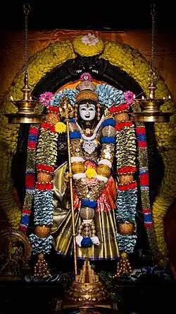 Every Friday evening between 100 and 150 people attend the Pooja, and on other weekdays 10 to 20 attend. Six services per day are held. Usually in July a ten-day temple festival, dedicated to the Hindu Goddess Durga, is celebrated, having about 4,000 visitors.[3][4]