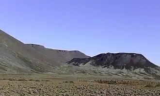 Another such eruption fissure is to be found nearby, therefore Icelanders prefer the plural Eldborgir undir Geitahlíð.[5] One of the eruption fissures dissects the older tuya Geitahlíð.
