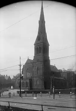 St. Peter's Episcopal Church in Pittsburgh, Pennsylvania, was an early example of the archaeological phase of Gothic Revival architecture, designed by the Philadelphia architect John Notman. It was originally built in 1851 at the corner of Grant and Diamond streets as a chapel of ease for Trinity Episcopal Church in the Diocese of Pittsburgh. The church and its site were purchased by Henry Clay Frick. The building itself was donated back to the congregation. It was dismantled, the stones numbered, and taken up Forbes Avenue in horsedrawn wagons to the corner of Forbes and Craft avenues, where it was reconstructed in 1901. It received a plaque from the Pittsburgh History and Landmarks Foundation. The church was deconsecrated in September 1989, and the building was demolished.[2]