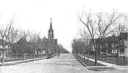 The first St. Ann's Church was financed by three parishioners who signed a note for $3,000.[3] The church was built of brick on the site now occupied by the Heisey Center. The first resident pastor was Father Dols, who was also responsible for parishes in Cascade, Choteau, and Neihart.
