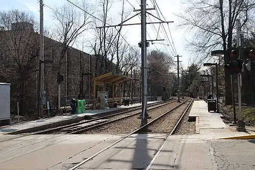 St. Anne's is a station on the Port Authority of Allegheny County's light rail network, located in Castle Shannon, Pennsylvania. Unlike every other small, street level stop along the network, St. Anne's features a parking lot. 130 spaces are available to commuters, and the station is also within walking distance of many area residences. While most street level stops are named for the nearest intersecting road, this station bears the name of St. Anne's Catholic School, from which the Port Authority leases the parking facility.