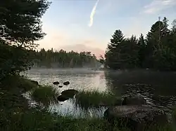 The river forms from the Chiputneticook Lakes (North Lake, East Grand Lake, Mud Lake, and Spednic Lake) along the Canadian–U.S. border. U.S. Geological Survey topographic maps show the St. Croix River as beginning at the 1.0-mile-long (1.6 km) outlet stream from East Grand Lake, then flowing through the short Mud Lake and entering Spednic Lake, extending 20 miles (32 km) to its outlet at Vanceboro, Maine, and the start of the river proper. Adding the section of river and lake from the outlet of East Grand Lake gives a total length of 95 miles (153 km) to the St. Croix.[1]