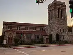 The historic church was designed by chief architect Bertram Goodhue[2] of Cram, Goodhue and Ferguson in a mix of Gothic Revival and Romanesque Revival architectural styles.[3] The church is #33 on South Pasadena's list of historic landmarks.[2] The stained glass windows were made by Judson Studios.[2][4]
